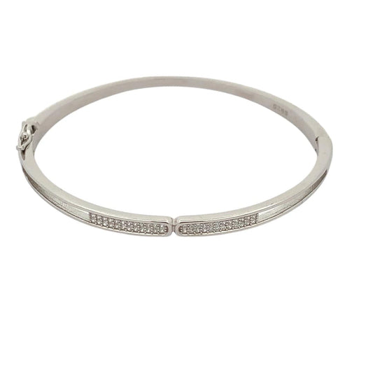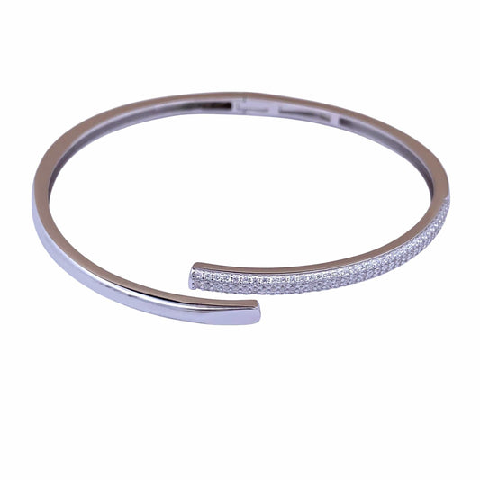 Zirconia Cuff Bracelet (Pure Silver) - Silver