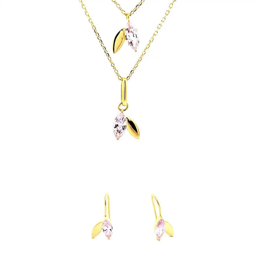 Blush Leafy Sparkle Necklace Set (Pure Silver) - Gold