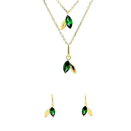 Green Leafy Sparkle Necklace Set (Pure Silver) - Gold
