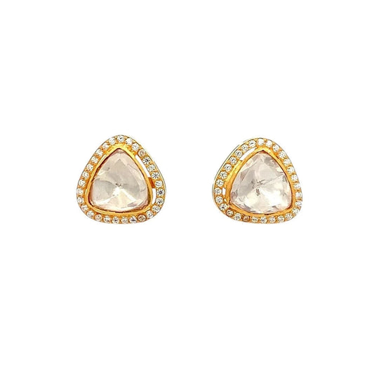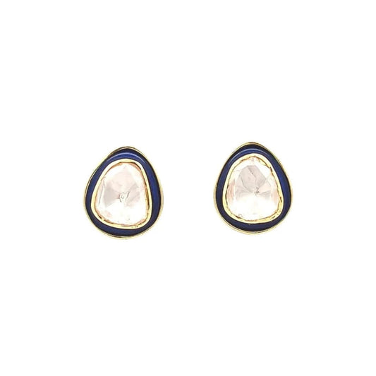 Rajwada Polki Earrings (Pure Silver) - Navy Blue
