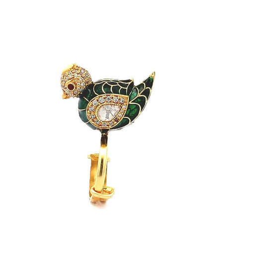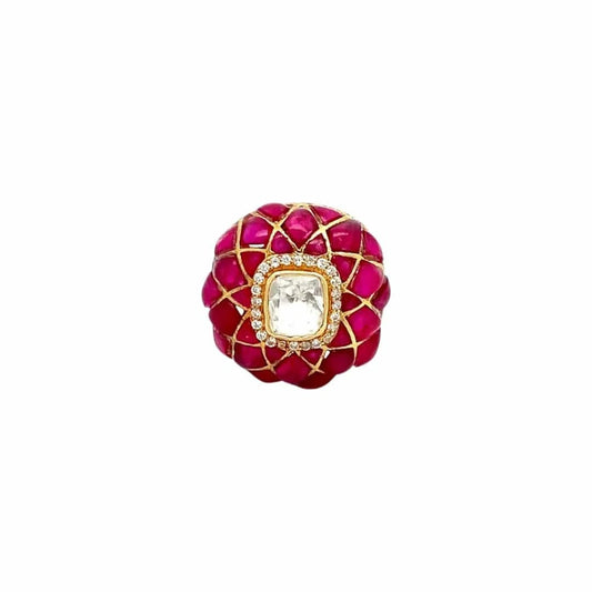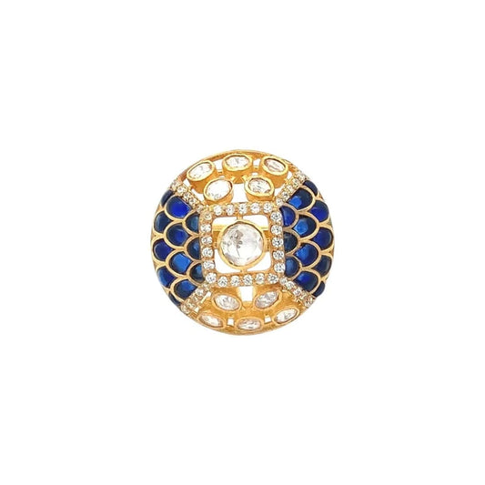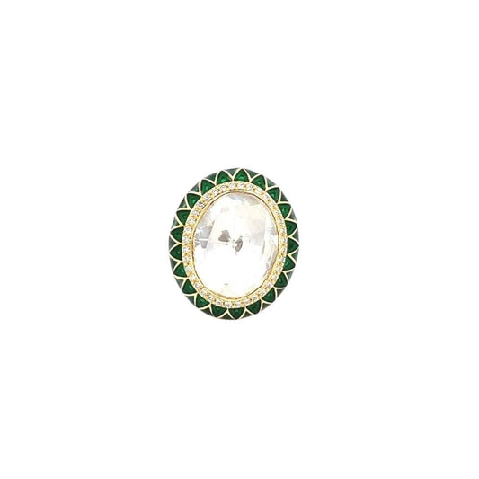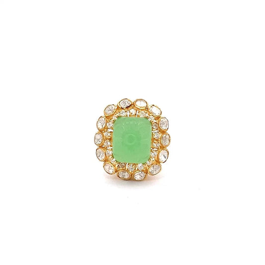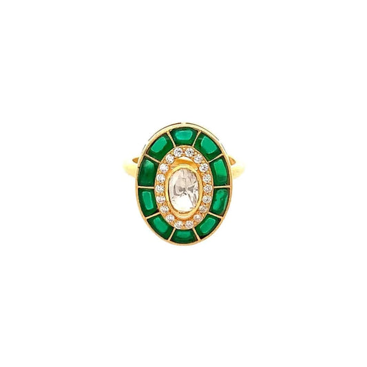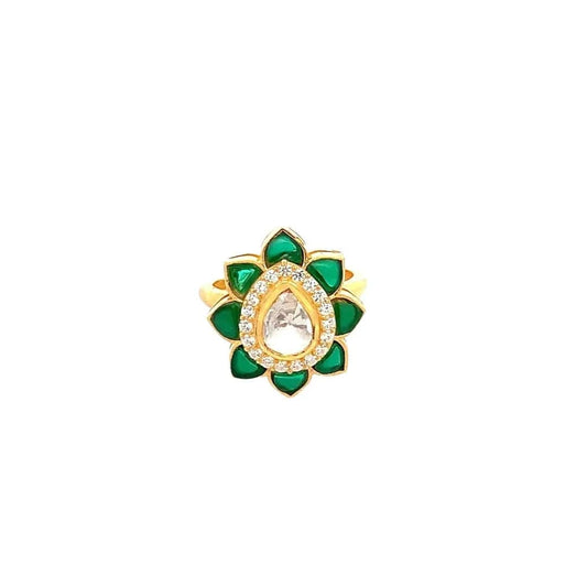 Majestic Polki Kundan Ring (Pure Silver) - Green