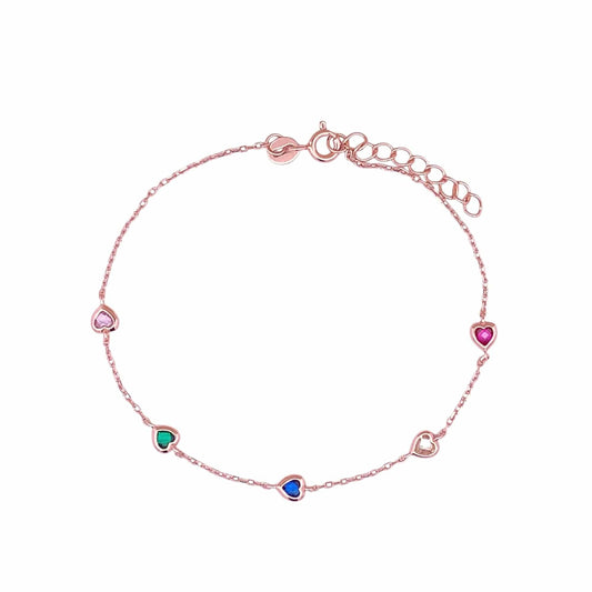 Multi Color Heart Bracelet (Pure Silver) - Rose Gold