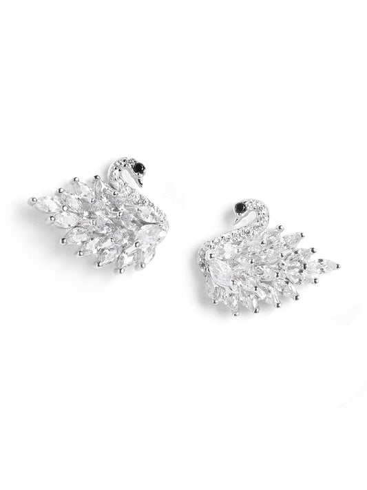 Flaunting Swan Stud Earrings (Pure Silver) - Silver