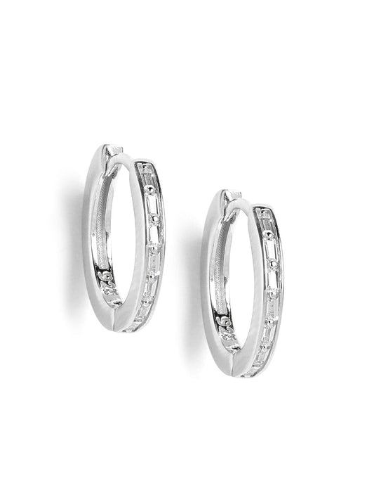 Baguette Cut Circle Huggie Earrings (Pure Silver) - Silver