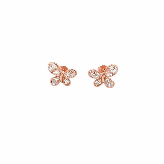 Baguette Wings Stud Earrings (Pure Silver) - Rose Gold