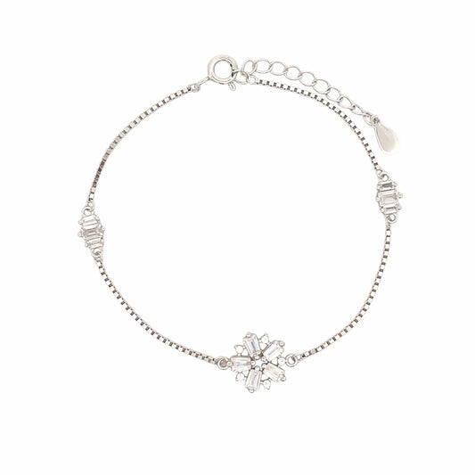 Crystal Flower Bracelet (Pure Silver) - Silver