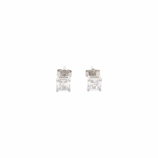 Baguette Square Stud Earrings (Pure Silver) - Silver