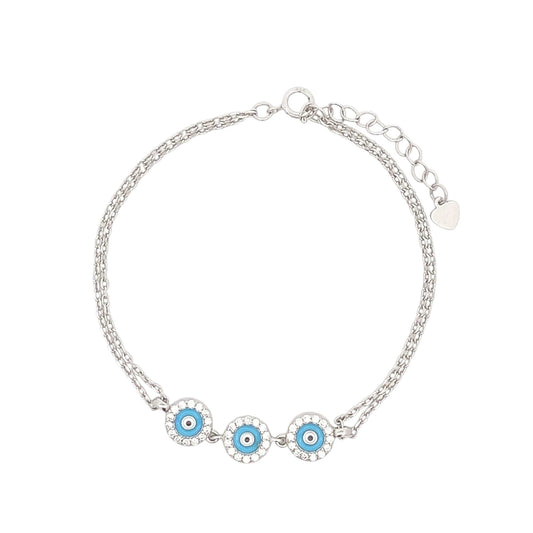 Double Layered Sky Blue Evil Eye Bracelet (Pure Silver) - Silver