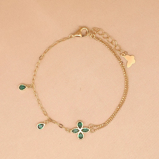 Emerald Flower Bracelet (Pure Silver) - Gold