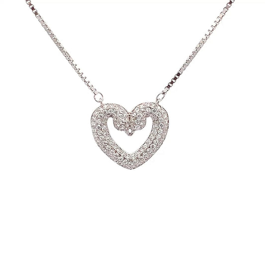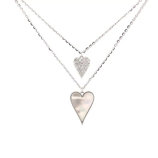 Double Layer Pave Heart Pendant Chain (Pure Silver) - Silver