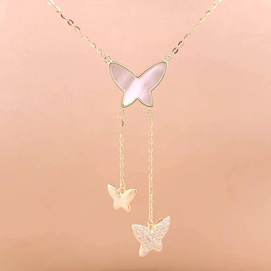 Exquisite Drop Butterfly Pendant Chain (Pure Silver) - Gold