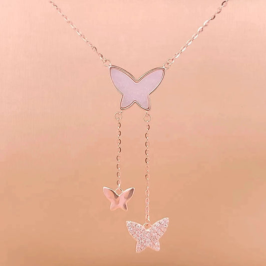 Exquisite Drop Butterfly Pendant Chain (Pure Silver) - Rose Gold