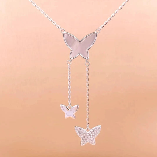 Exquisite Drop Butterfly Pendant Chain (Pure Silver) - Silver