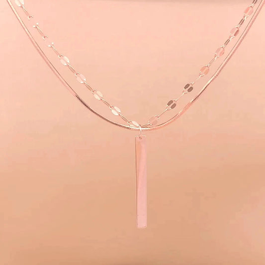 Double Layered Vertical Bar Pendant Chain (Pure Silver) - Rose Gold