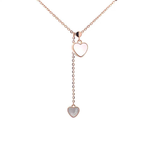 Heart to Heart Drop Pendant Chain (Pure Silver) - Rose Gold