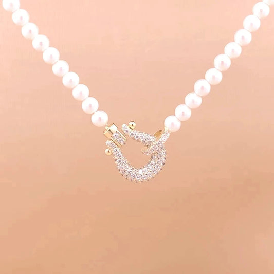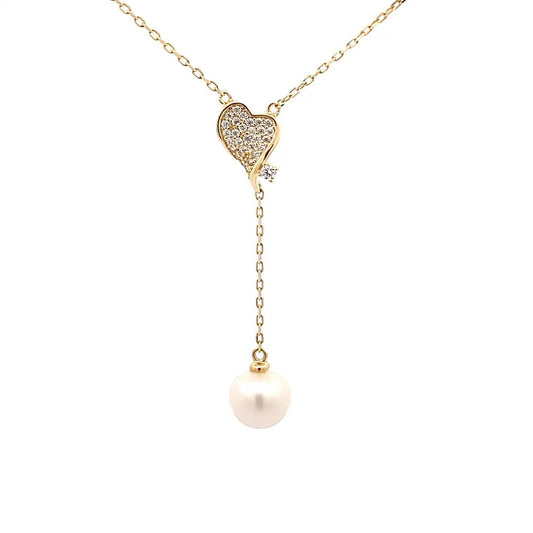 Twisted Heart Pearl Drop Pendant Chain (Pure Silver) - Gold
