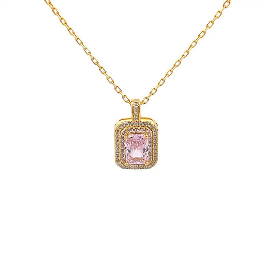 Rectangle Emerald Cut Pendant Chain (Pure Silver) - Gold