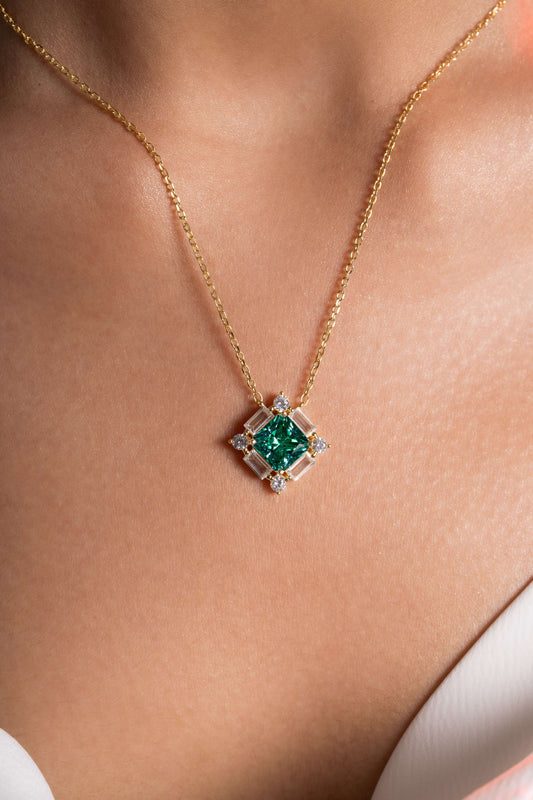 Viridian Princess Cut Pendant Chain (Pure Silver) - Gold