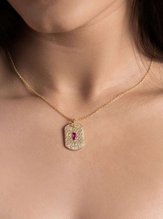 Pink Ombre Bar Pendant Chain (Pure Silver) - Gold