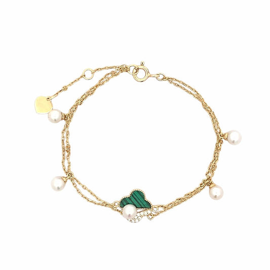 Malachite Fan Pearl Bracelet (Pure Silver) - Gold