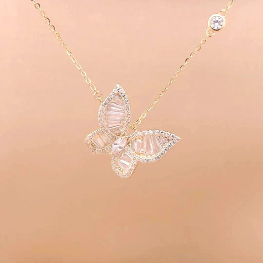 Sparkling Butterfly Pendant Chain (Pure Silver) - Gold