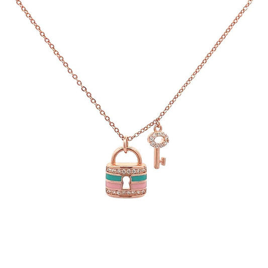 Eternal Lock and Key Pendant Chain (Pure Silver) - Rose Gold