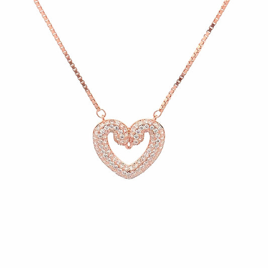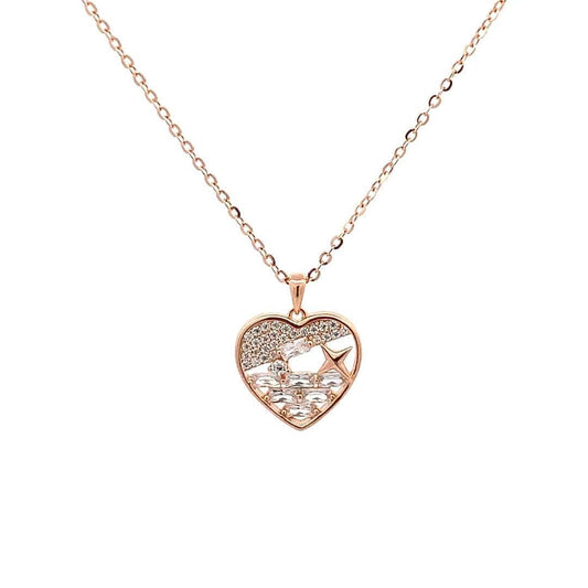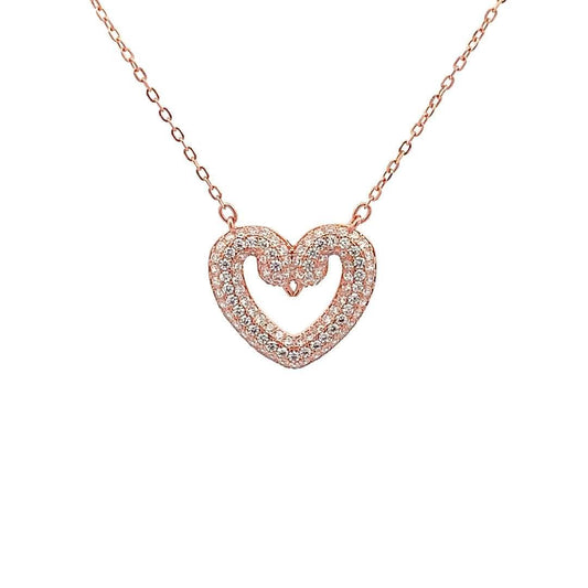 Swan Heart Pendant Chain (Pure Silver) - Rose Gold