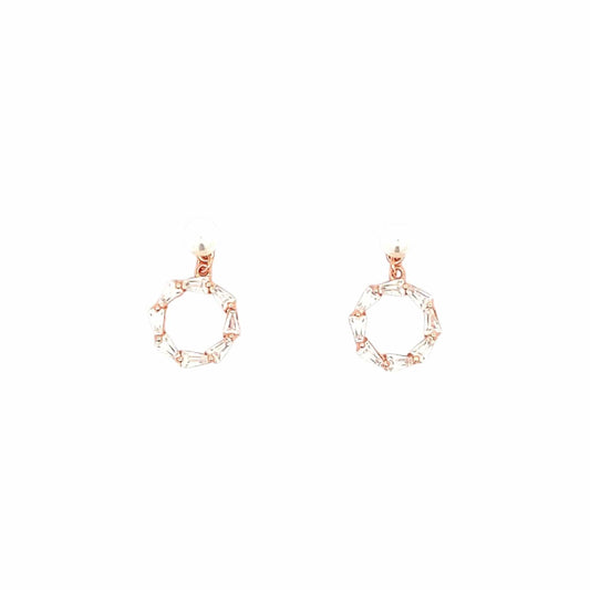 Baguette Circle Drop Earrings (Pure Silver) - Rose Gold