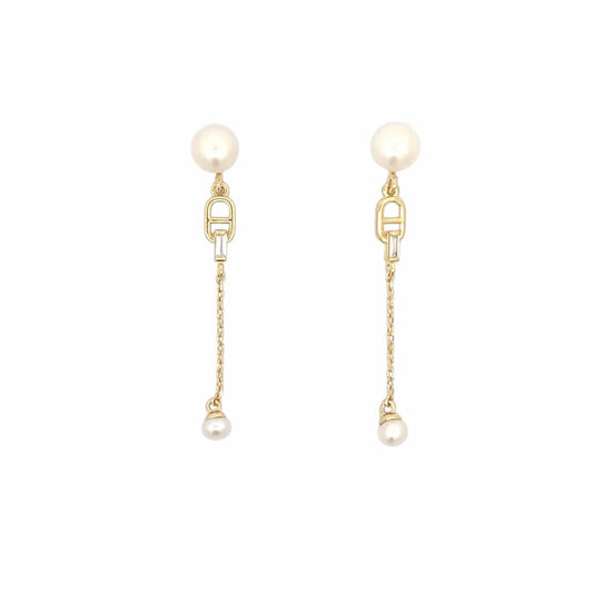 Pearl Link Drop Earrings (Pure Silver) - Gold