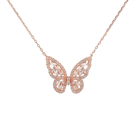 Flutter Baguette Pendant Chain (Pure Silver) - Rose Gold