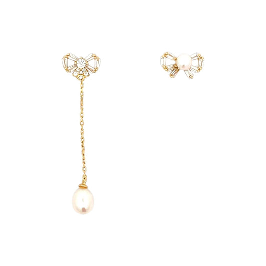 Mixed Bow Drop Earrings (Pure Silver) - Gold