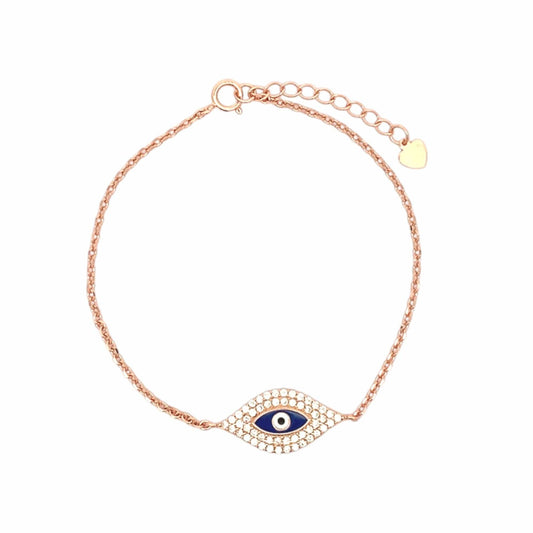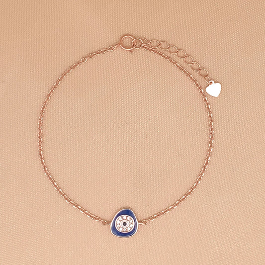 Blue Enamel Evil Eye Bracelet (Pure Silver) - Rose Gold