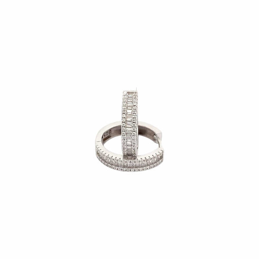 Baguette Round Huggie Earrings (Pure Silver) - Silver