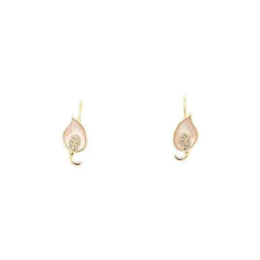 Tiny Leaf Hook Earrings (Pure Silver) - Rose Gold
