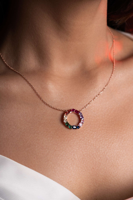 Rainbow Dazzle Halo Pendant Chain (Pure Silver) - Rose Gold