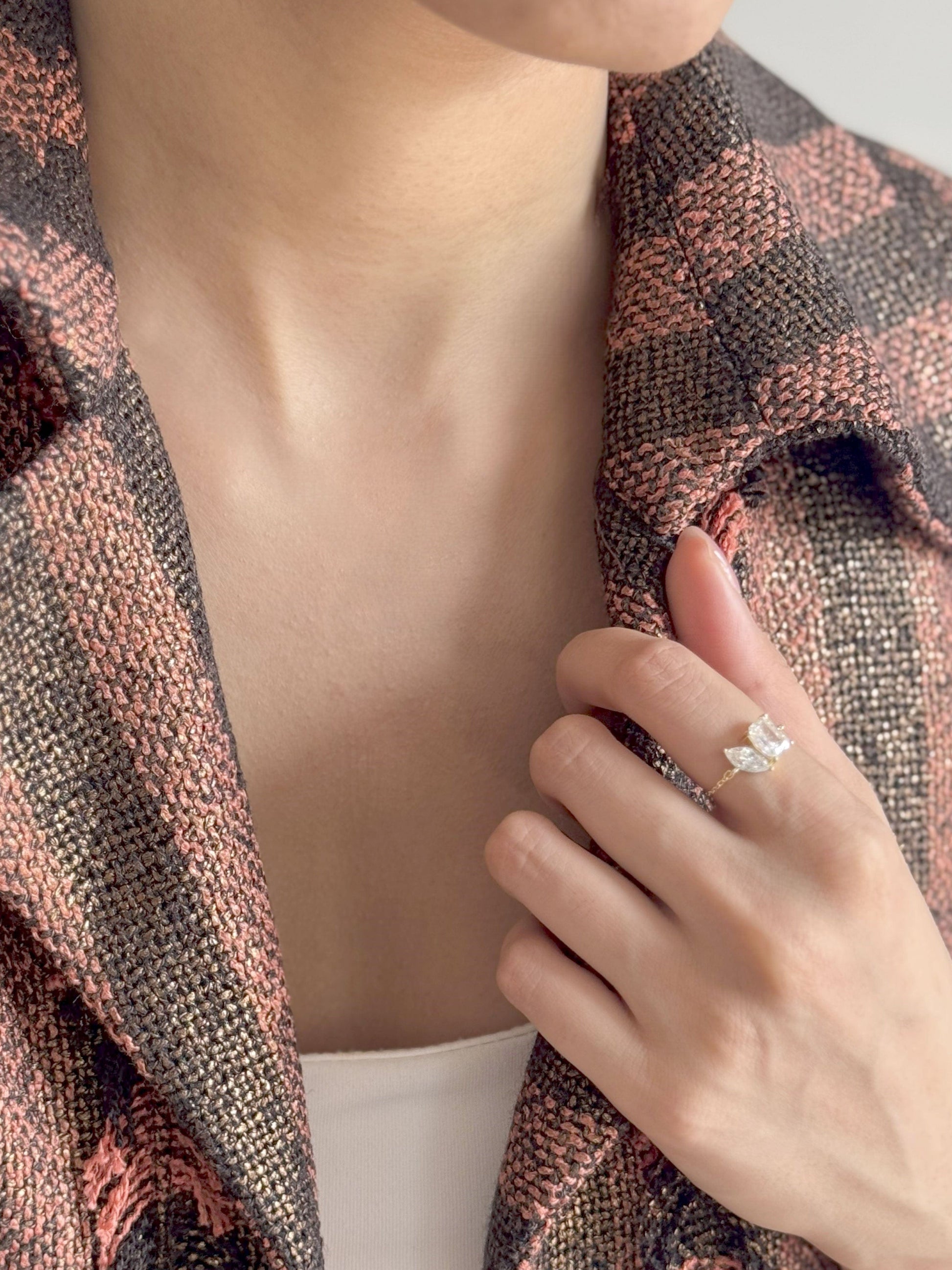 Celebrate brilliance and balance with our Toi et Moi Adjustable Chain Ring, where a rectangle and marquise cubic zirconia meet in graceful union along a delicate adjustable chain. Inspired by the timeless French expression “You and Me”, this design symbolizes harmony and duality — the union of strength and elegance, light and grace — creating a piece that is both captivating and eternal.