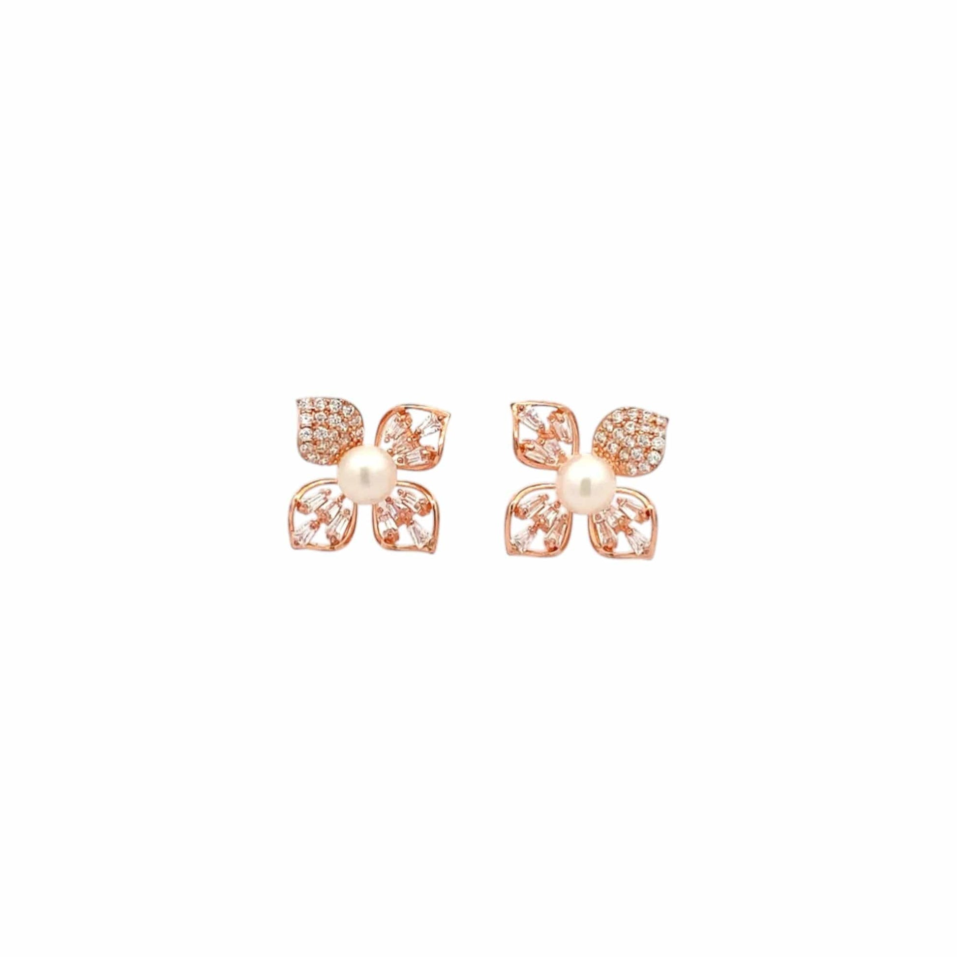 Elegant Pearl Bloom Stud Earrings (Pure Silver) - Rose Gold