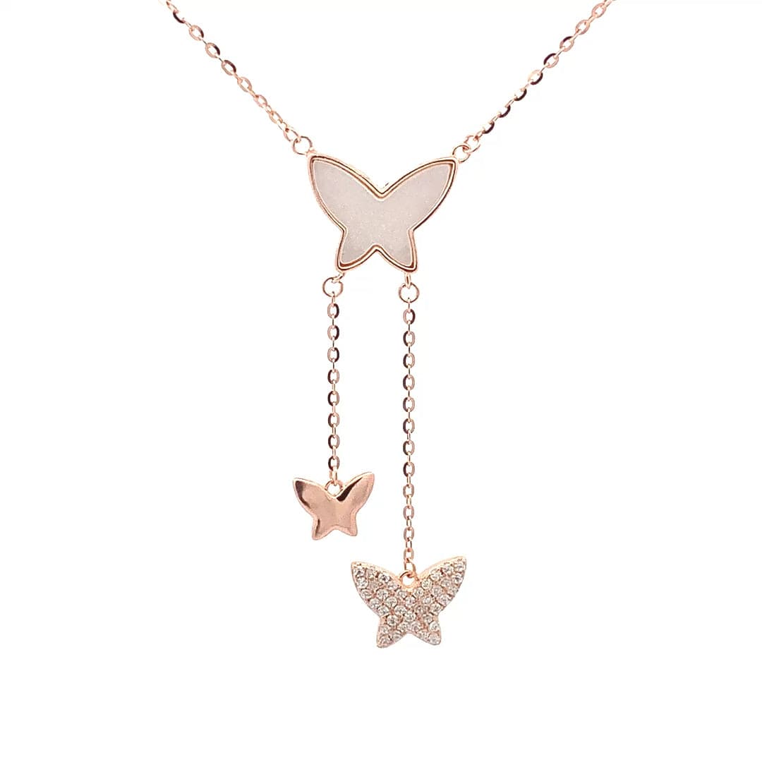 Exquisite Drop Butterfly Pendant Chain (Pure Silver) - Rose Gold