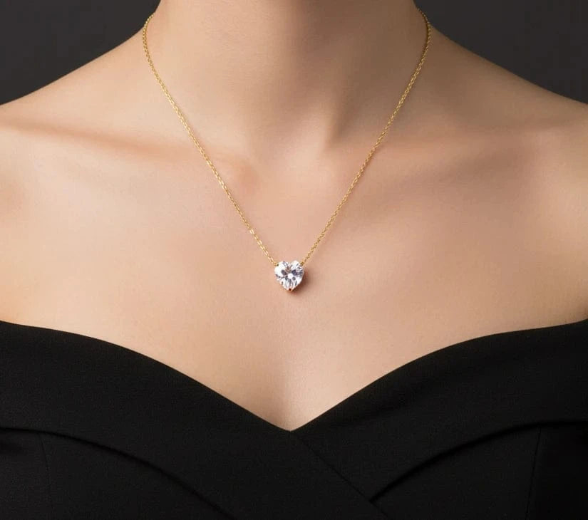 Perfect for daily wear or special occasions, its sleek silhouette and sparkling brilliance celebrate love, femininity, and timeless style. Let the shimmering heart-shaped stone on the pendant embody the magic of blissful elegance.