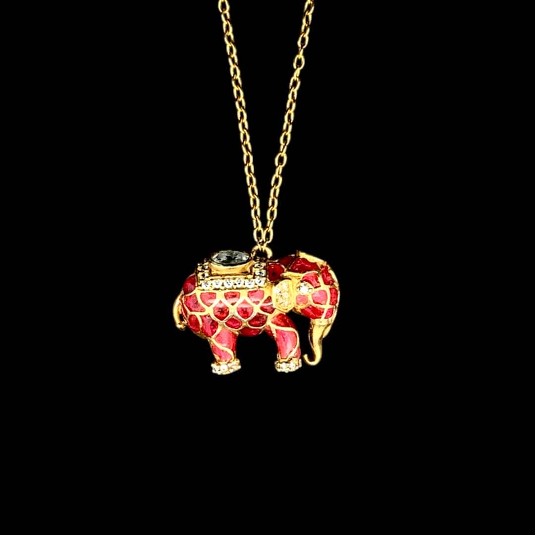 Suspended from the chain, the pendant embodies royal artistry, bringing to life the grandeur of heritage design through its magnificent elephant motif. Adorned with vibrant meenakari and luminous Polki accents, the pendant reflects the strength, wisdom, and auspicious fortune elephants have symbolized in royal courts for centuries. Each detail is crafted to capture movement and majesty, transforming the necklace into a talisman of prosperity and grace.