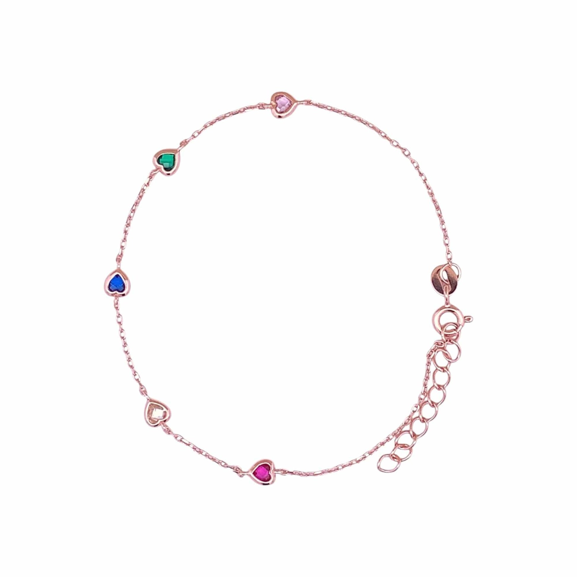 Multi Color Heart Bracelet (Pure Silver) - Rose Gold
