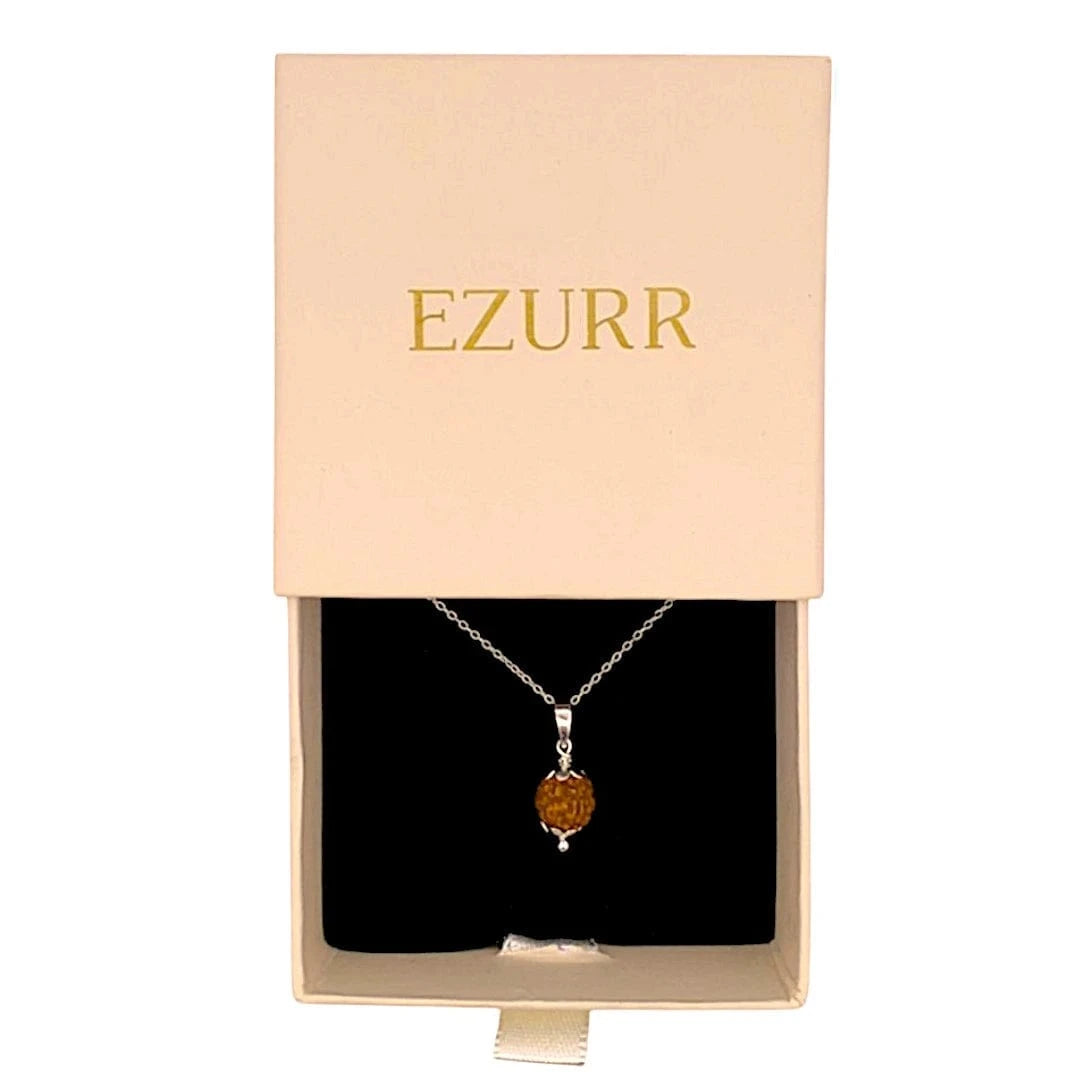 5 Mukhi Rudraksha is a Gift peace, protection & positivity. This sacred Rudraksha promotes calm, clarity & emotional balance. Paired with a 925 real silver chain—perfect for daily wear from Ezurr.