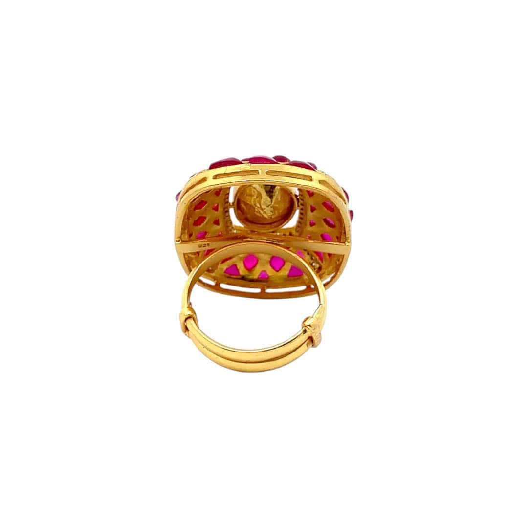 Available in two majestic hues — Pink, embodying grace and feminine allure, and Green, evoking prosperity and regal vitality — each shade carries deeper symbolism, echoing heritage and power. The ring features an adjustable band, ensuring a secure, comfortable, and personalized fit for every wearer, while maintaining the permanence and poise of sovereign jewels.