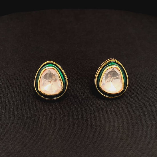 Unveiling the splendor of bygone palaces, Our Rajwada Polki Earrings are crafted as heirlooms of sovereign beauty. Shaped in an elegant pear form, each earring cradles a radiant Polki stone at its core — uncut, pure, and timeless, glowing with the unspoken majesty of dynasties past. Around this heart, meenakari artistry unfurls in sweeping strokes, its enamel richness bringing alive the opulence of ancient ateliers.