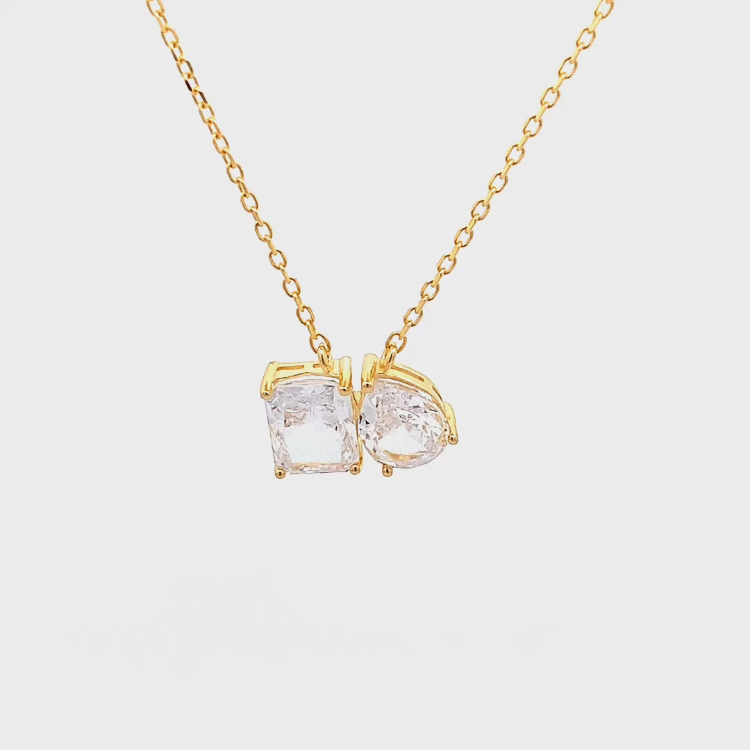 Celebrate harmony and elegance with our Toi et Moi Pendant Chain, where a rectangular Crushed Ice Cut Cubic Zirconia meets a pear-shaped counterpart in a dazzling union of sparkle and form. Inspired by the French “Toi et Moi”—“You and Me”—this pendant symbolizes the perfect balance of two contrasting yet complementary elements.Â