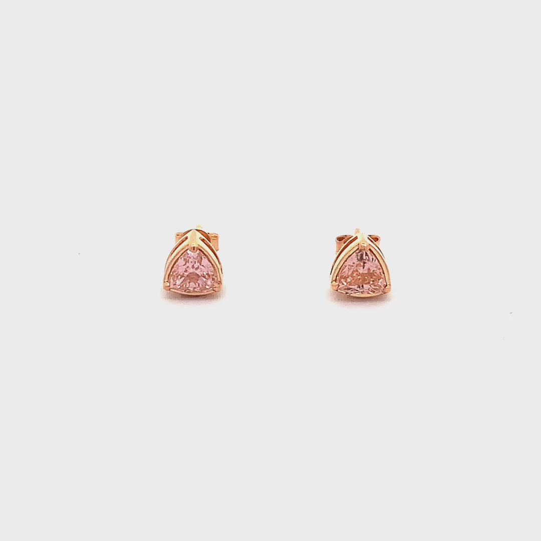 Embrace the elegance of sculpted simplicity with our Trillia earrings. A peach trillion-cut gemstone forms the heart of each design, its crisp triangular silhouette catching the light with quiet brilliance. The soft hue glows with understated warmth, while the faceted surface adds a gentle play of depth and reflection. Framed in a clean, minimal setting, the stone stands out with refined clarity, bringing balance to the piece’s modern geometry and delicate presence. Crafted to move seamlessly from day to dusk, this pair offers a graceful accent to your everyday rhythm. Let your presence glow in angles of soft peach light.