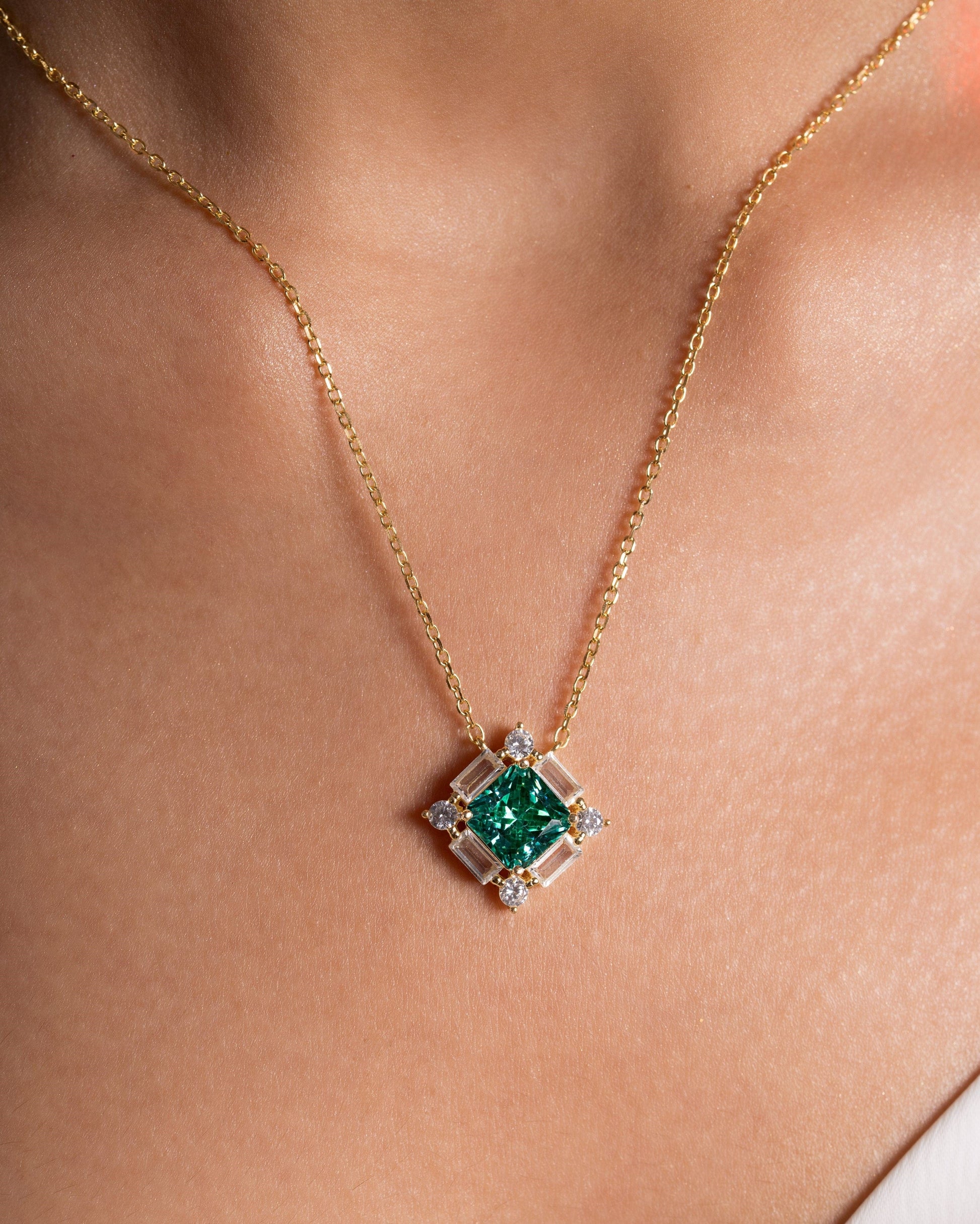 Viridian Princess Cut Pendant Chain (Pure Silver) - Gold
